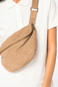 100% coton biologique. Tissu en velours côtelé. Aspect délavé. Sac banane avec anse ajustable en matière principale et boucle de serrage en métal recyclé. Zip d'ouverture en métal recyclé. Produit teint en pièce après montage: les couleurs peuvent varier d'un produit à l'autre. Ce produit est susceptible de déteindre au contact avec des surfaces ou vêtements clairs.