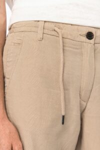 70% Lyocell TENCEL™* / 30% Lin. Coupe ajustée. Cordon brut ton sur ton avec finition embout métal. Bouton à la taille et braguette zippée. Bouton intérieur pour maintien supplémentaire. Finition intérieure ceinture avec biais de propreté ton sur ton. Poche monnaie et poche ticket intérieur poche droite. Fond de poche droite et gauche 100% coton. Poches arrière passepoilées avec une surpiqûre en renfort. Bouton de poche arrière en plastique imitation bois. *TENCEL™ est une marque de Lenzing AG.