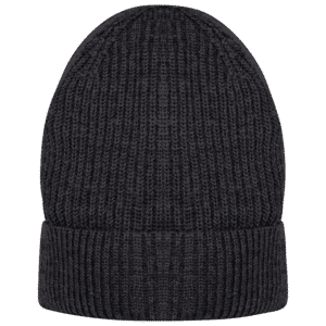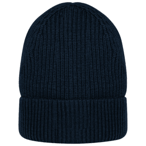 100% laine mérinos responsable RWS (Responsible Wool Standard). Fil peigné. Jauge 7. Tricotage en côte 1 x 1. Bonnet à large revers. Poids moyen : 80 g.
