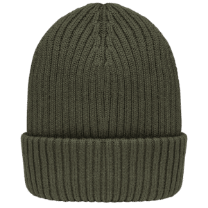 100% coton biologique. Fil peigné. Jauge 7. Tricotage côte 2 x 2. Finition de montage tricoté en "Fully Fashion". Bonnet à double revers. Poids moyen : 55 g.