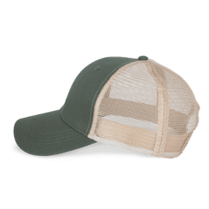 Visière et panneau avant en 100% coton biologique. Panneaux arrières en mesh 100% polyester recyclé post consumer. Tissu en twill et en mesh. Casquette 6 panneaux ajustable avec patte de serrage en plastique recyclé à l'arrière. Visière avec surpiqûres. Panneaux avant avec renfort. Biais finition intérieure.