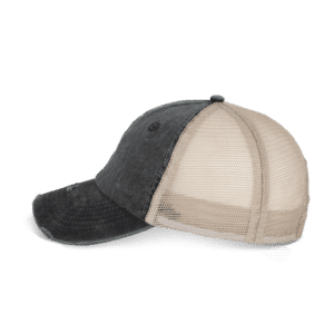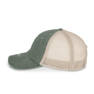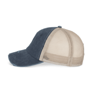 Visière et panneau avant en 100% coton biologique. Panneaux arrières en mesh 100% polyester recyclé post-consumer. Tissu en twill et en mesh. Aspect délavé et usé. Casquette 6 panneaux ajustable. Produit teint en pièce après montage : les couleurs peuvent varier d'un produit l'autre. Ce produit est susceptible de déteindre au contact avec des surfaces ou vêtements clairs.