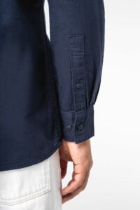 100% coton biologique. Coton twill. Coupe standard. Tissu brossé sur l’extérieur. Boutons en plastique recyclé ton sur ton. Col avec pied de col. Poche poitrine plaquée côté coeur. Bas de manches avec poignet et capucin avec boutons. Pli rond au dos. Patte de boutonnage rapportée.