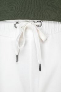 100% coton biologique. Fabriqué au Portugal. Coton peigné ringspun. Lavé aux enzymes. Intérieur molleton non gratté (French Terry). Deux poches latérales. Ceinture élastiquée avec cordon plat, œillets et embouts en métal recyclé. Bord côte 1 x 1 bas de jambes. Poches passepoilées avant et arrière. Vêtement teint après montage : les couleurs peuvent légèrement varier d'une pièce à l'autre. Ce produit est susceptible de déteindre au contact avec des surfaces ou vêtements clairs.