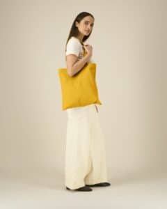 Bord supérieur doublement plié pour plus de solidité et une finition soignée Longues anses dans la matière principale renforcées par un point de croix