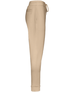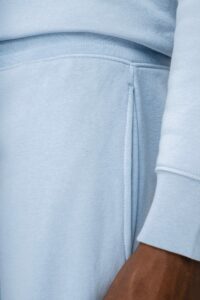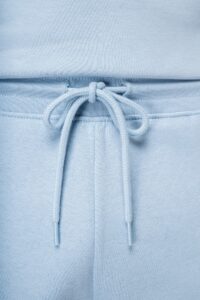 85% coton biologique / 15% polyester recyclé post-consumer. Coton peigné ringspun. Lavé aux enzymes. Molleton gratté 3 fils LSF (Low Shrinkage Fleece). Ceinture en côte 1 x 1 avec cordon de serrage et oeillet boutonnière. Poches latérales et une poche arrière passepoilée. Bord côte 1 x 1 bas de jambes. La couleur Raw Natural se distingue par son aspect brut visuellement texturé, parsemée de fines particules visibles à l’œil nu. Note : nous faisons évoluer la finition du cordon. Sur les nouvelles productions l'embout du cordon sera en métal recyclé en remplacement de l’actuel embout en plastique. En raison du mélange des stocks, la finition pourra varier momentanément d'une commande à l'autre