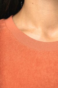 80% coton biologique / 20% polyester recyclé post-consumer. Fabriqué au Portugal. Coton peigné. Matière éponge. Coupe droite à épaules tombantes. Lavé aux enzymes. Bord côte col 1 x 1. Finition encolure bande de propreté en chevrons ton sur ton. Finition double surpiqûre bas de manches et de vêtement. Demi-lune au dos. Renfort épaules.