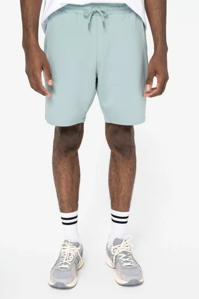 48% modal TENCEL™* / 47% coton biologique / 5% élasthanne. Toucher ultra doux. Ceinture élastiquée. Cordon rond avec embouts en métal recyclé. Poches latérales. Fausse braguette. Poche arrière avec zip caché en nylon recyclé et tire-zip en métal recyclé. * TENCEL™ est une marque de Lenzing AG.