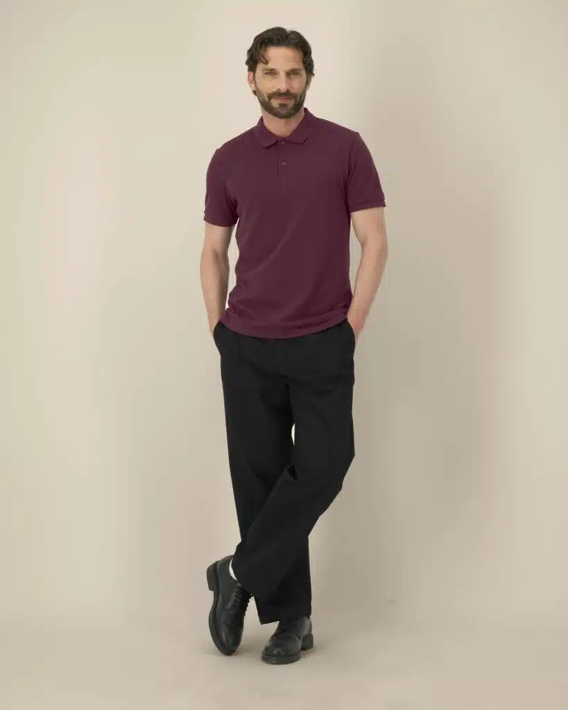 Col et bas de manches en côte plate Bande de propreté en jersey simple épais Patte de boutonnage avant à 2 boutons ton sur ton Manches montées Surpiqûre double aux coutures épaules Fentes latérales renforcées par des brides Surpiqûre double étroite au bas de corps Teint en pièce (Garment-dyed) : chaque pièce est unique, de légères variations de couleur sont possibles