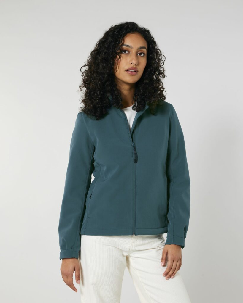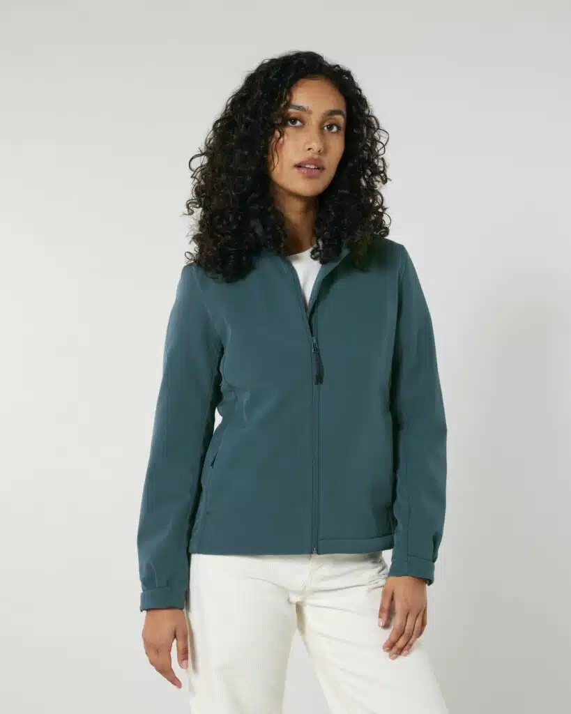 Col montant Zip nylon inversé milieu devant Manches montées Poches passepoilées zippées avec tirettes élastiques réfléchissantes Bas de manches ajustable par velcro Bas de corps ajustable avec cordon élastique et stoppeurs en plastique Toutes les coutures intérieures finies avec un biais recyclé Doublure en polaire anti-boulochage Tissu 3 couches entièrement contrecollé avec membrane TPU recyclée Tissu softshell bi-extensible pour un meilleur ajustement et une meilleure tenue Déperlant jusqu'à 10 000 mm avec Bionic Finish® Eco Respirant jusqu'à 3 000 g/m²/24h Coupe-vent