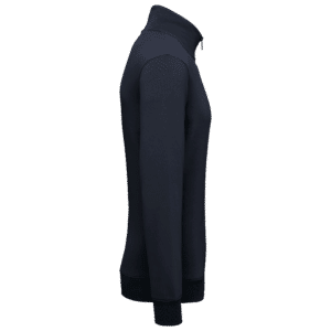 85% coton biologique / 15% polyester recyclé post-consumer. Coton peigné. Coupe droite. Lavé aux enzymes. Molleton gratté 3 fils LSF (Low Shrinkage Fleece : molleton pré-rétréci). 1/2 lune au dos. Col montant doublé en matière principale avec une ouverture avec zip en métal recyclé. Bande de propreté en jersey ton sur ton en finition intérieur de col. Bord côte 1 x 1 bas de manches et de vêtement.