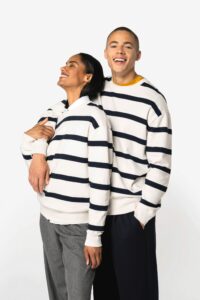 Sweat-shirt écoresponsable à col rond à rayures et épaules tombantes unisexe