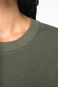 100% coton biologique. Fabriqué au Portugal. Coton peigné ringspun. Coupe droite. Lavé aux enzymes. Intérieur molleton non gratté (French Terry). 1/2 lune au dos. Point de recouvrement à l'encolure, aux emmanchures, aux bas de manches et de vêtement. Bord côte 1 x 1 manches, encolure et bas de vêtement. Encolure avec bande de propreté intérieure en chevrons. Vêtement teint après montage : les couleurs peuvent légèrement varier d'une pièce à l'autre. Ce produit est susceptible de déteindre au contact avec des surfaces ou vêtements clairs.