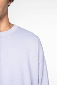 100% coton biologique. Fabriqué au Portugal. Coton peigné ringspun. Coupe oversize à épaules tombantes. Lavé aux enzymes. 1/2 lune au dos. Intérieur molleton non gratté (French Terry). Point de recouvrement à l'encolure, aux emmanchures, aux bas de manches et de vêtement. Bord côte 1 x 1 manches et bas de vêtement. Encolure avec bande de propreté intérieure en chevrons. Vêtement teint après montage : les couleurs peuvent légèrement varier d'une pièce à l'autre. Ce produit est susceptible de déteindre au contact avec des surfaces ou vêtements clairs.