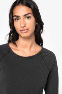 100% coton biologique. Coton peigné. Coupe droite. Coutures latérales. Aspect délavé. Manches raglan. Encolure ronde avec colletage en bord côte 1 x 1. Finition en points de recouvrement manches raglan, bas de manches et de vêtement. Bande de propreté intérieure col en chevrons. Vêtement teint après montage : les couleurs peuvent varier d’un produit à l’autre. Ce produit est susceptible de déteindre au contact avec des surfaces ou vêtements clairs.