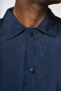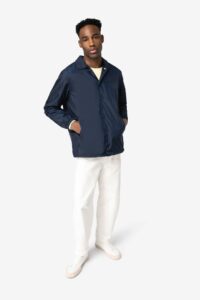 100% polyester recyclé post-consumer. Coupe standard. Tissu déperlant niveau 4. Doublure jersey 160 g/m². Doublure manche Taffeta pour faciliter le passage du bras. 2 poches passepoilées et une poche intérieure. Cordon bas de vêtement. Bas de manche élastiqué. Fermeture par boutons pressions ton sur ton. Surpiqûre simple épaules, emmanchures, bas et col. Bride pour suspendre vêtement. Zip pour personnalisation en bas et à la poitrine.