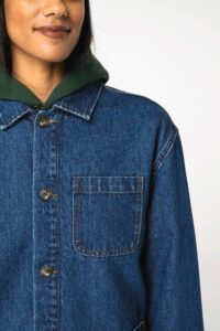 100% coton biologique. Coupe standard à épaules légèrement tombantes. Denim de coton. Effet délavé. Fermeture patte de boutonnage rapportée avec boutons en plastique recyclé effet corne. Poche poitrine plaquée côté cœur et deux poches plaquées en bas de vêtement. Col avec pied de col fantaisie. Patch de personnalisation en matière principale avec bride de suspension à l’intérieur du vêtement. Poignet boutonné avec fente. Ourlet simple surpiqûre bas de vêtement. Vêtement lavé après montage : les couleurs peuvent légèrement varier d’une pièce à l’autre. Ce produit est susceptible de déteindre au contact avec des surfaces ou vêtements clairs.